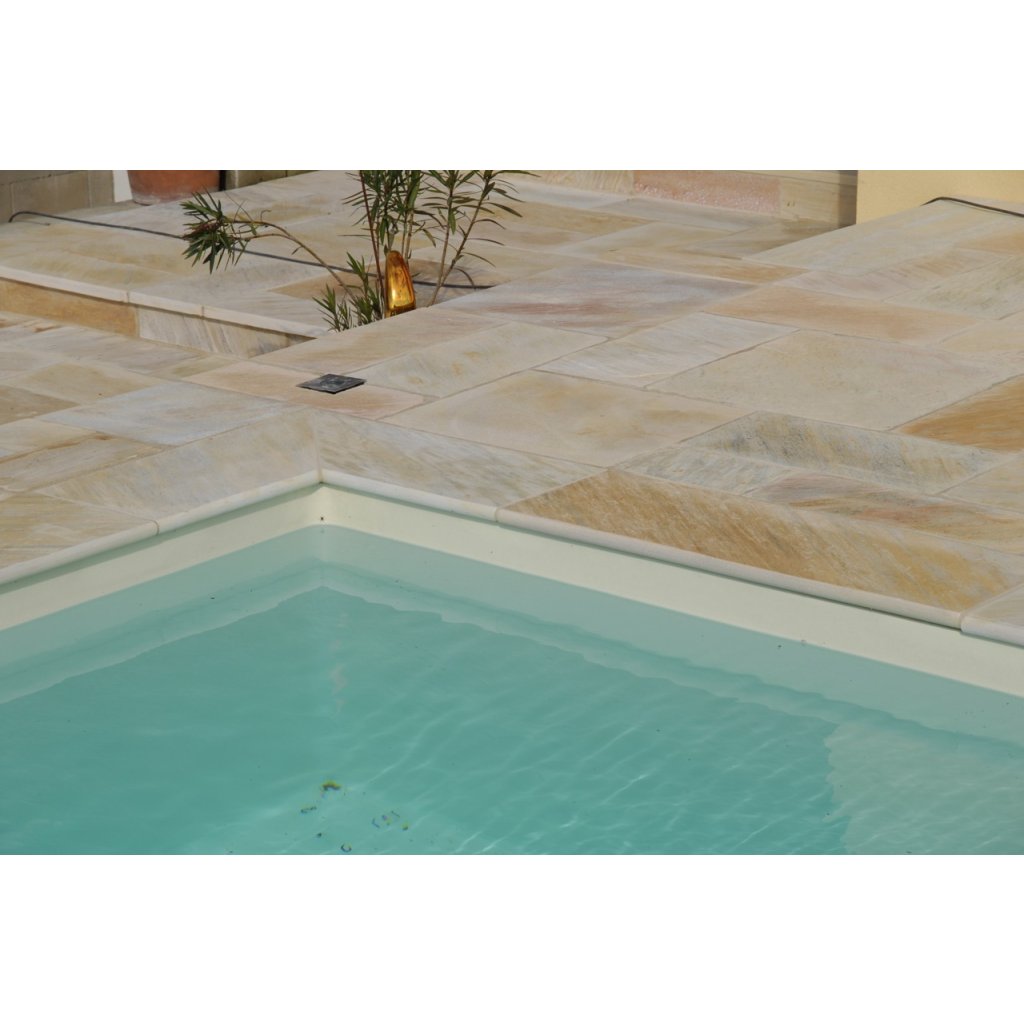 Bazénové lemy Helios z přírodního kamene jsou vyrobeny z kvarcitu. Díky svým zakulaceným hranám vytváří praktické a elegantní zakončení bazénu. Rozměry kamenného lemu Helios jsou 47 x 47 cm, tloušťka je 2,5 cm a přibližná váha jednoho kusu 15 kg. Dobře se kombinují s kamennou dlažbou nebo kamenným kobercem s pryskyřicí. Bazénový lem Helios můžete lepit vysoce kvalitním lepidlem Stonelep.