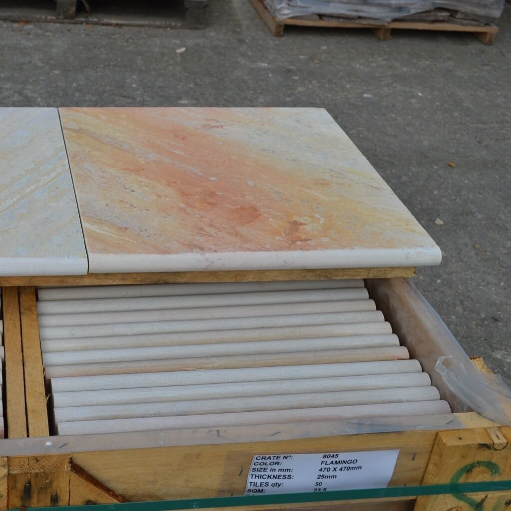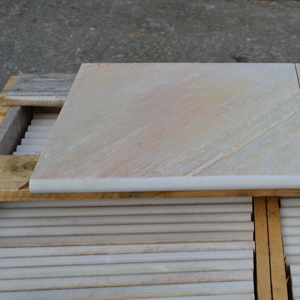 Bazénové lemy Rosa z přírodního kamene jsou vyrobeny z kvarcitu. Díky svým zakulaceným hranám vytváří praktické a elegantní zakončení bazénu. Rozměry kamenného lemu Rosa jsou 47 x 47 cm, tloušťka je 2,5 cm a přibližná váha jednoho kusu 15 kg. Dobře se kombinují s kamennou dlažbou nebo kamenným kobercem s pryskyřicí.