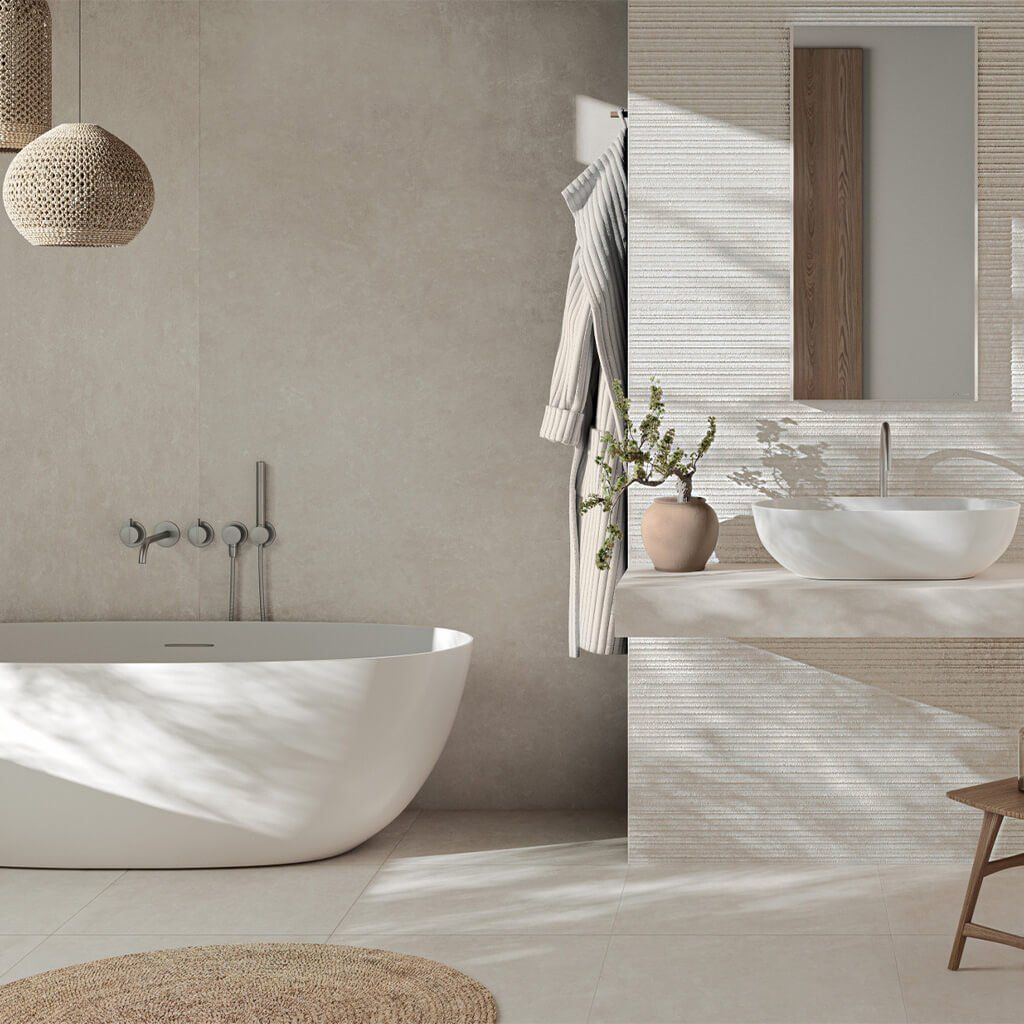 Série Linea obohacuje hladké plochy o výrazný hmatový a optický prvek. Používá se jako designový akcent na vybraných stěnách (např. za televizí, ve sprchovém koutě nebo v recepci), kde její struktura opticky rozbíjí jednolitost prostoru.