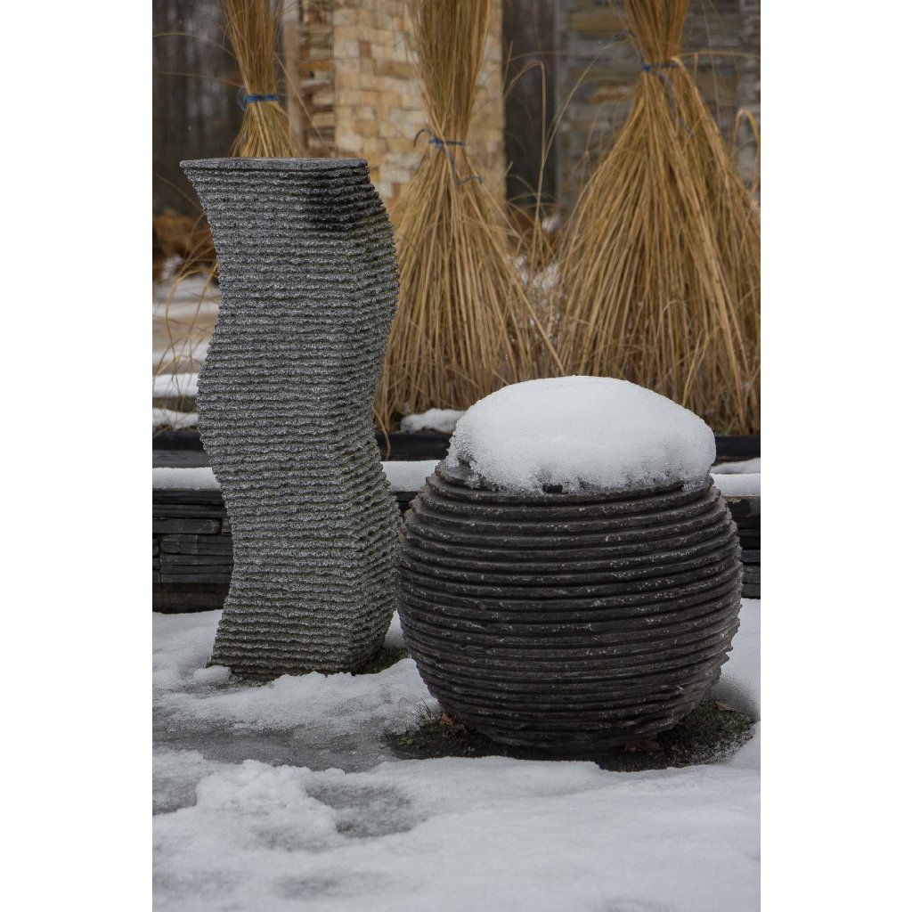 Masivní čedičová fontána z přírodního kamene v černo-šedo-hnědých odstínech působí velmi autenticky a robustně. Vrchní část je pečlivě opracovaná do kruhových linií, které...