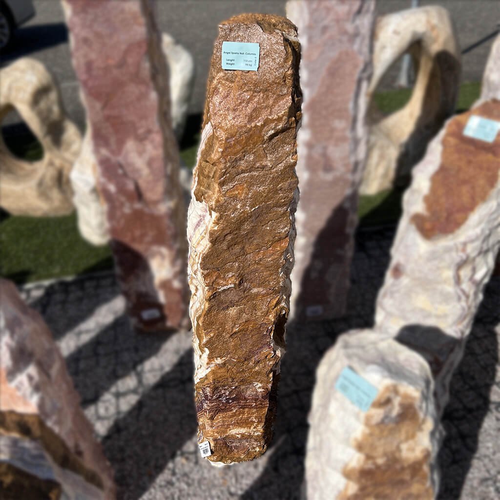 Kamenný sloup Angel (výška 156 cm, váha 220 kg, přibližné rozměry 28 x 25 cm) je jedinečná dekorace z přírodního kamene s výraznou kresbou v odstínech žluté, krémové, oranžové a...