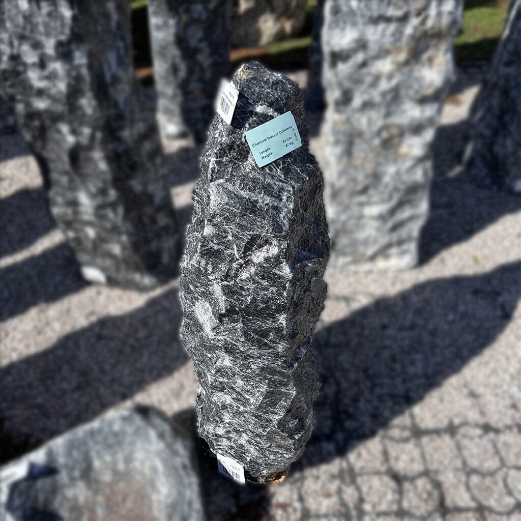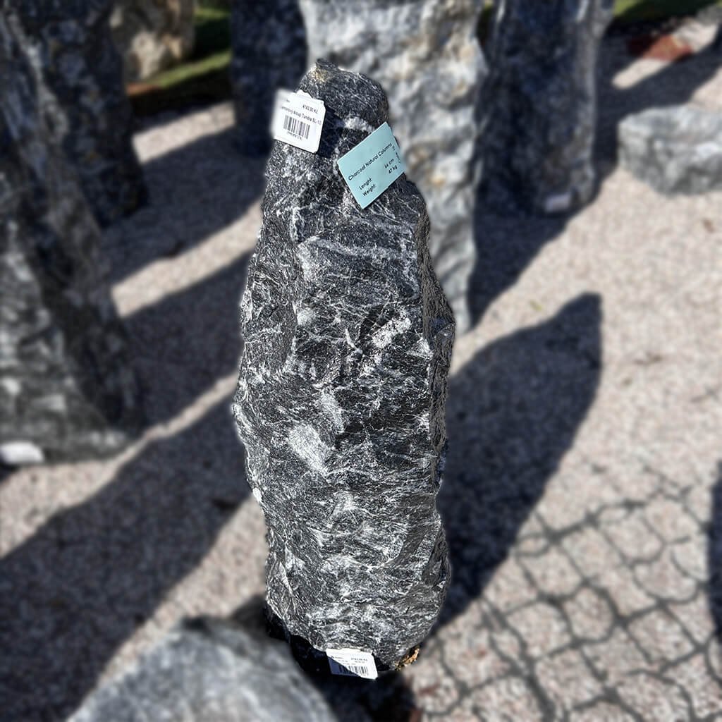 Kamenný sloup Tundra představuje speciální dekoraci a každý kus je originál, který vyniká tmavě šedou až antracitovou barvou se světlými a bílými žílami. Tyto kontrastní linie vytvářejí přirozené obrazce a zvýrazňují nadčasovou estetiku mramoru. Povrch je drsný, texturovaný a bohatý na nepravidelné vzory, které poskytují každému sloupu autentický charakter.