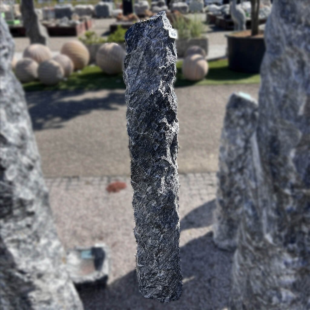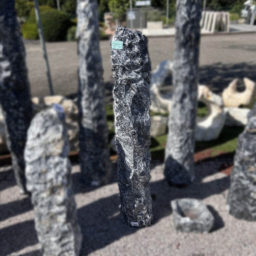 Kamenný sloup Tundra představuje speciální dekoraci a každý kus je originál, který vyniká tmavě šedou až antracitovou barvou se světlými a bílými žílami. Tyto kontrastní linie vytvářejí přirozené obrazce a zvýrazňují nadčasovou estetiku mramoru. Povrch je drsný, texturovaný a bohatý na nepravidelné vzory, které poskytují každému sloupu autentický charakter.