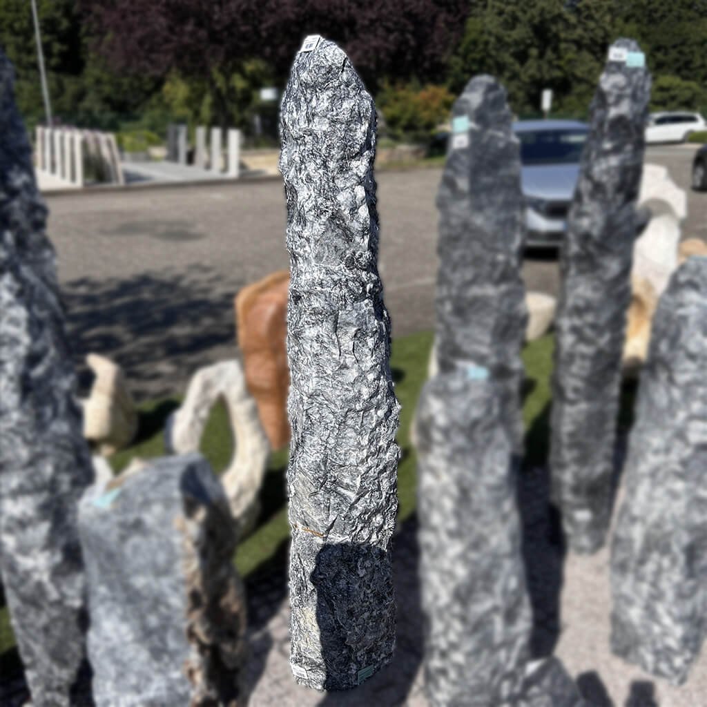 Kamenný sloup Tundra představuje speciální dekoraci a každý kus je originál, který vyniká tmavě šedou až antracitovou barvou se světlými a bílými žílami. Tyto kontrastní linie vytvářejí přirozené obrazce a zvýrazňují nadčasovou estetiku mramoru. Povrch je drsný, texturovaný a bohatý na nepravidelné vzory, které poskytují každému sloupu autentický charakter.