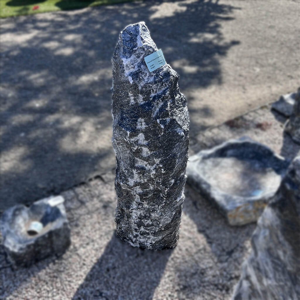 Kamenný sloup Tundra představuje speciální dekoraci a každý kus je originál, který vyniká tmavě šedou až antracitovou barvou se světlými a bílými žílami. Tyto kontrastní linie vytvářejí přirozené obrazce a zvýrazňují nadčasovou estetiku mramoru. Povrch je drsný, texturovaný a bohatý na nepravidelné vzory, které poskytují každému sloupu autentický charakter.