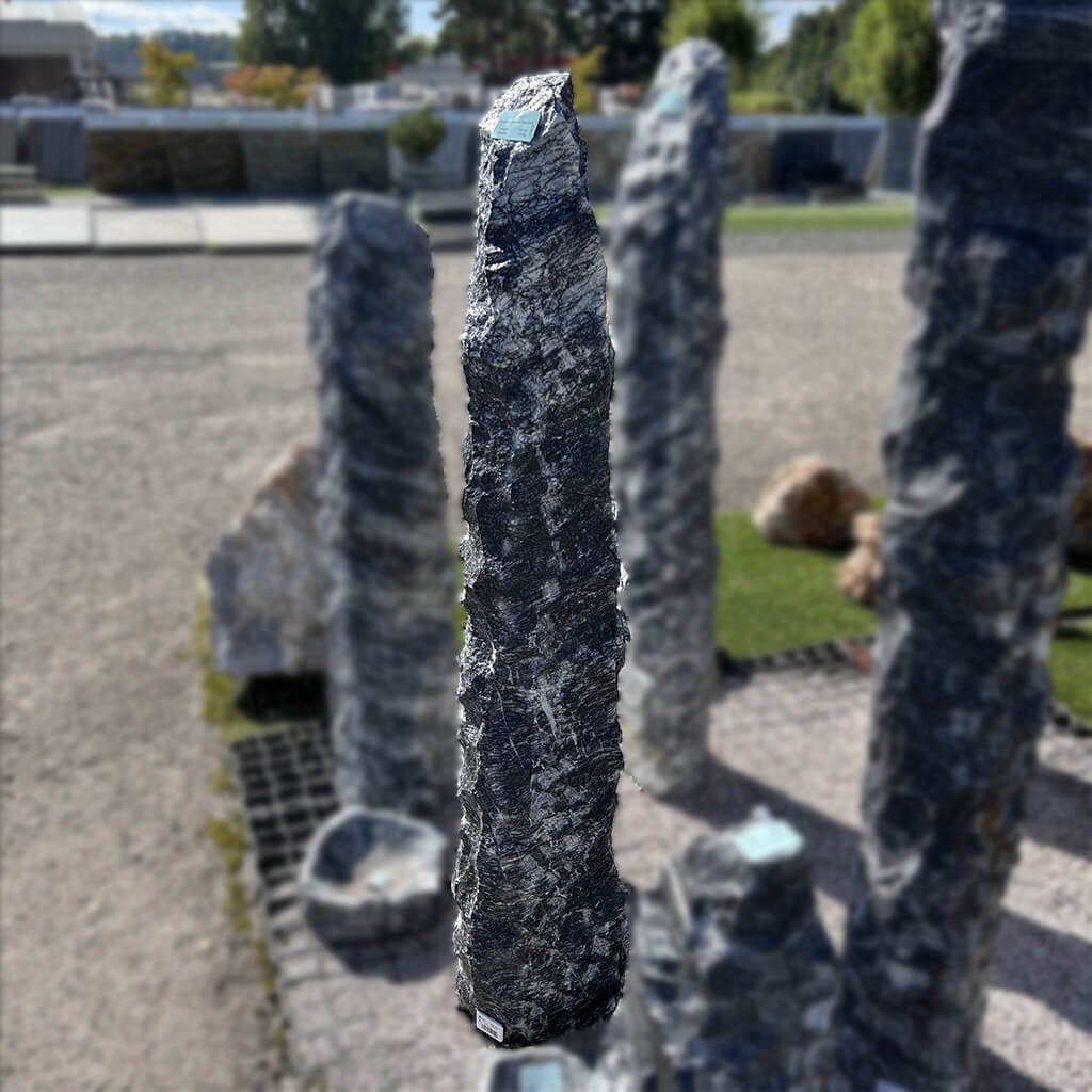 Kamenný sloup Tundra představuje speciální dekoraci a každý kus je originál, který vyniká tmavě šedou až antracitovou barvou se světlými a bílými žílami. Tyto kontrastní linie vytvářejí přirozené obrazce a zvýrazňují nadčasovou estetiku mramoru. Povrch je drsný, texturovaný a bohatý na nepravidelné vzory, které poskytují každému sloupu autentický charakter.