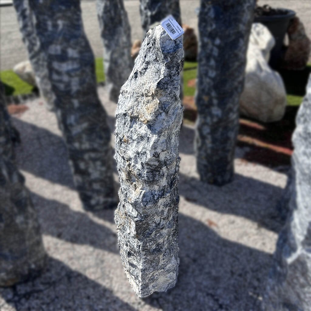 Kamenný sloup Tundra představuje speciální dekoraci a každý kus je originál, který vyniká tmavě šedou až antracitovou barvou se světlými a bílými žílami. Tyto kontrastní linie vytvářejí přirozené obrazce a zvýrazňují nadčasovou estetiku mramoru. Povrch je drsný, texturovaný a bohatý na nepravidelné vzory, které poskytují každému sloupu autentický charakter.