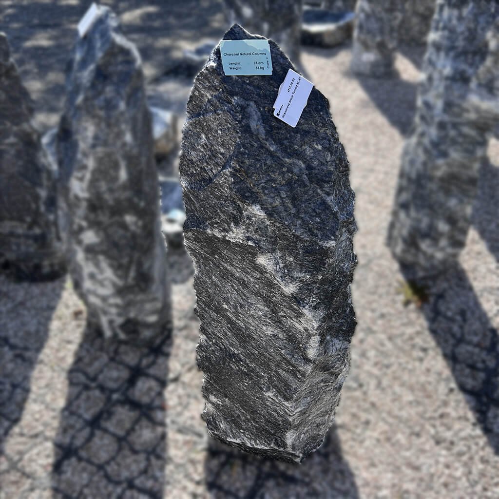 Kamenný sloup Tundra představuje speciální dekoraci a každý kus je originál, který vyniká tmavě šedou až antracitovou barvou se světlými a bílými žílami. Tyto kontrastní linie vytvářejí přirozené obrazce a zvýrazňují nadčasovou estetiku mramoru. Povrch je drsný, texturovaný a bohatý na nepravidelné vzory, které poskytují každému sloupu autentický charakter.