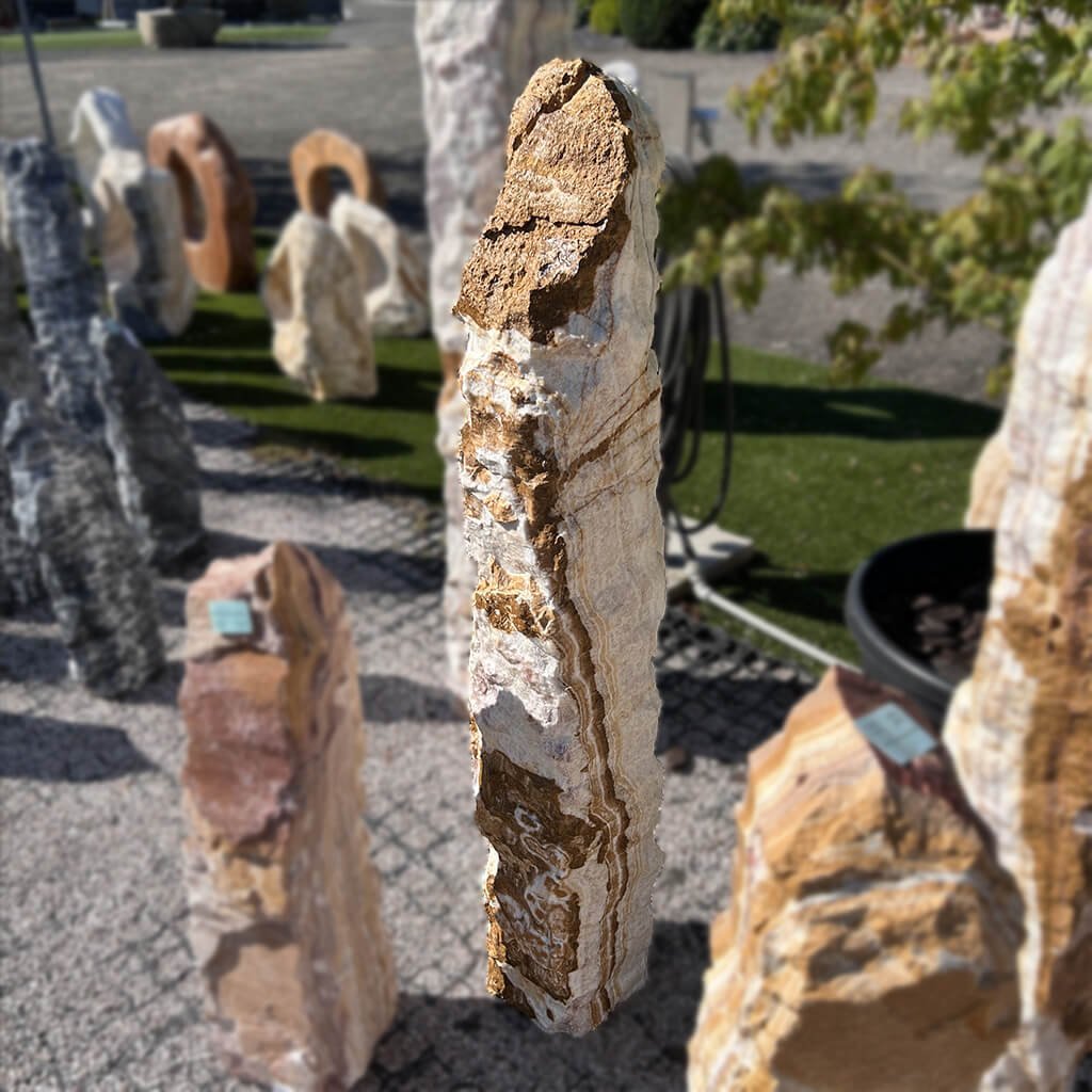 Kamenný sloup Angel (výška 156 cm, váha 220 kg, přibližné rozměry 28 x 25 cm) je jedinečná dekorace z přírodního kamene s výraznou kresbou v odstínech žluté, krémové, oranžové a...