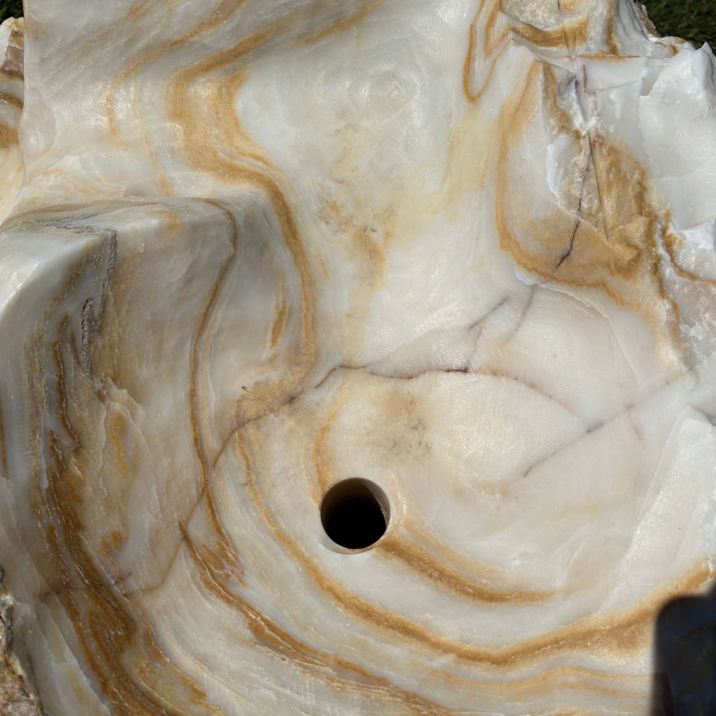 Fontána z přírodního onyxu propojuje estetiku s přírodními prvky a vytváří v zahradě či interiéru klidné, harmonické prostředí. Každý kus je originál s jedinečným tvarem a...