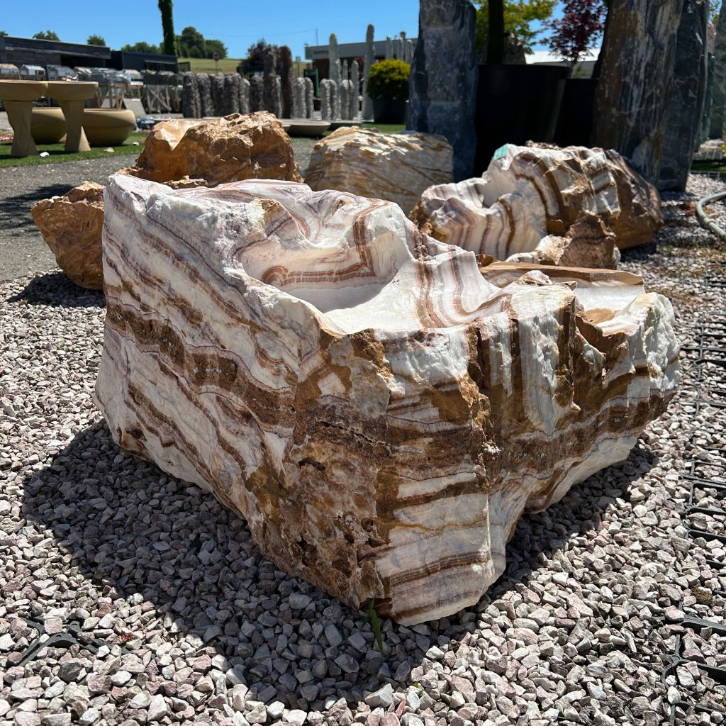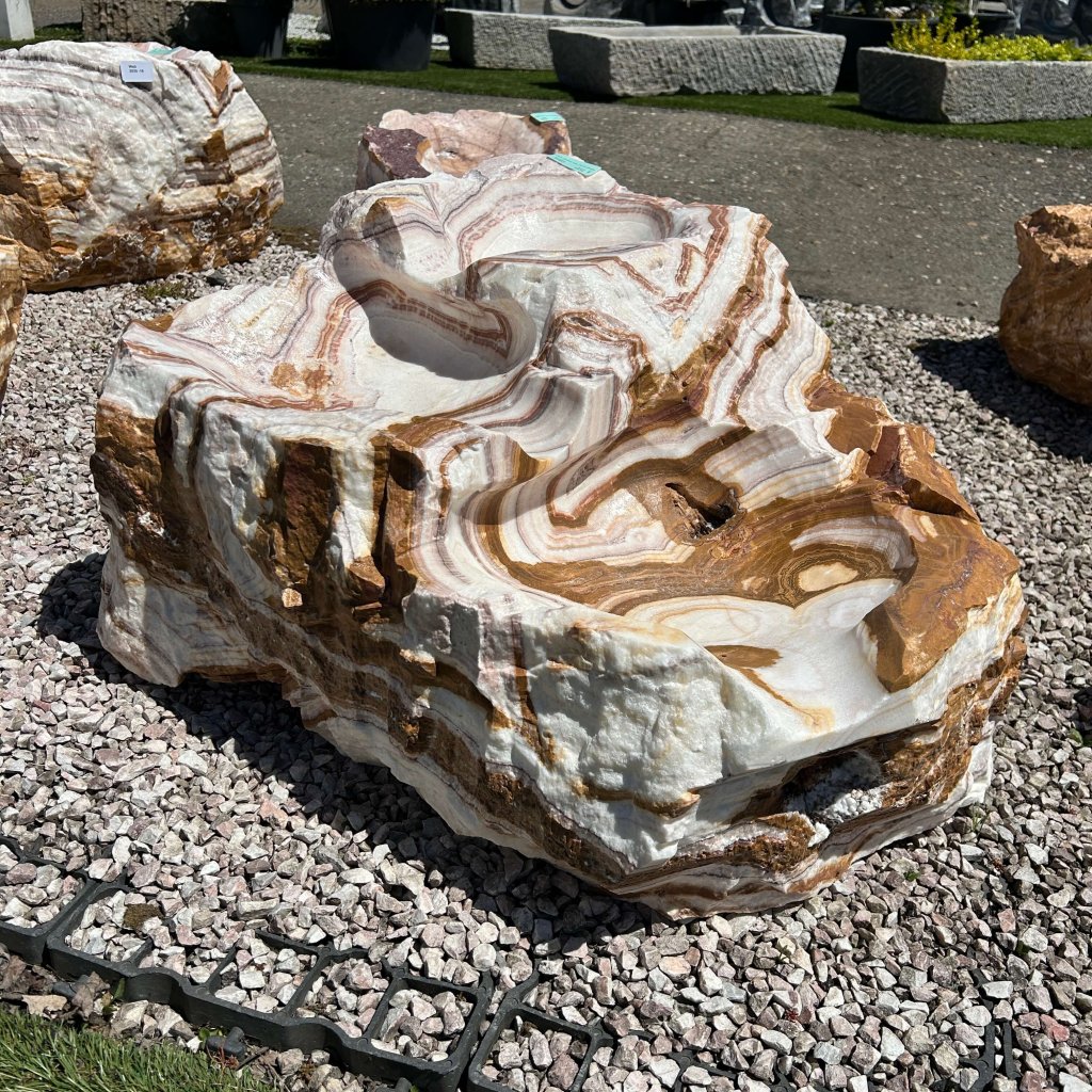 Dekorativní fontána z přírodního kamene onyxu je jedinečným prvkem pro vaši zahradu, terasu nebo interiér. Každý kus je originál, vytvořený přírodou, a přináší harmonii, klid a...