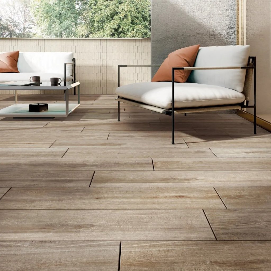 Tato venkovní dlažba je nejen praktická, ale i esteticky působivá. Její autentický design věrně napodobuje přírodní dřevo, čímž dodá Vašemu venkovnímu prostoru jedinečný šarm a harmonii. Ideální je jako dlažba na balkon, kde vytvoří příjemné prostředí pro odpočinek, nebo jako dlažba kolem bazénu, kde oceníte její protiskluzové vlastnosti. Naše keramická dlažba je skvělou volbou pro každého, kdo chce propojit eleganci dřeva s trvanlivostí keramiky. Vyberte si kvalitu, která odolá všem nástrahám počasí a zkrášlí Váš domov na dlouhá léta. Využijte této žádané novinky v našem sortimentu a proměňte svůj exteriér v útulné místo plné stylu a pohodlí.