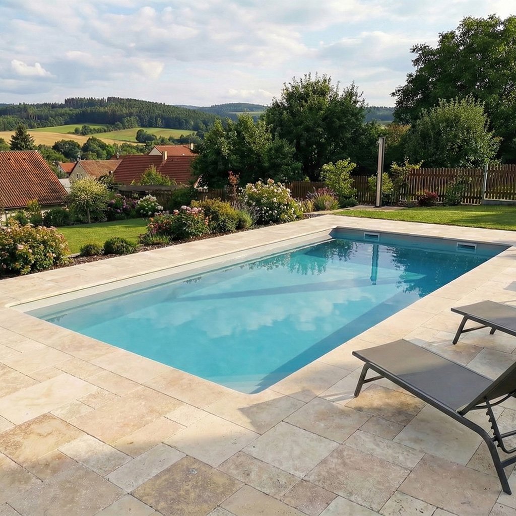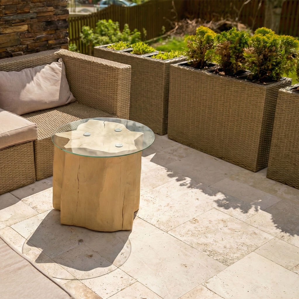 Travertinová dlažba o tloušťce 3 cm je ideální volbou pro venkovní terasy, chodníky a okolí bazénů. Díky své pevnosti ji nemusíte lepit na beton – nejlepším a nejpřirozenějším způsobem je suchá pokládka do štěrkového lože.