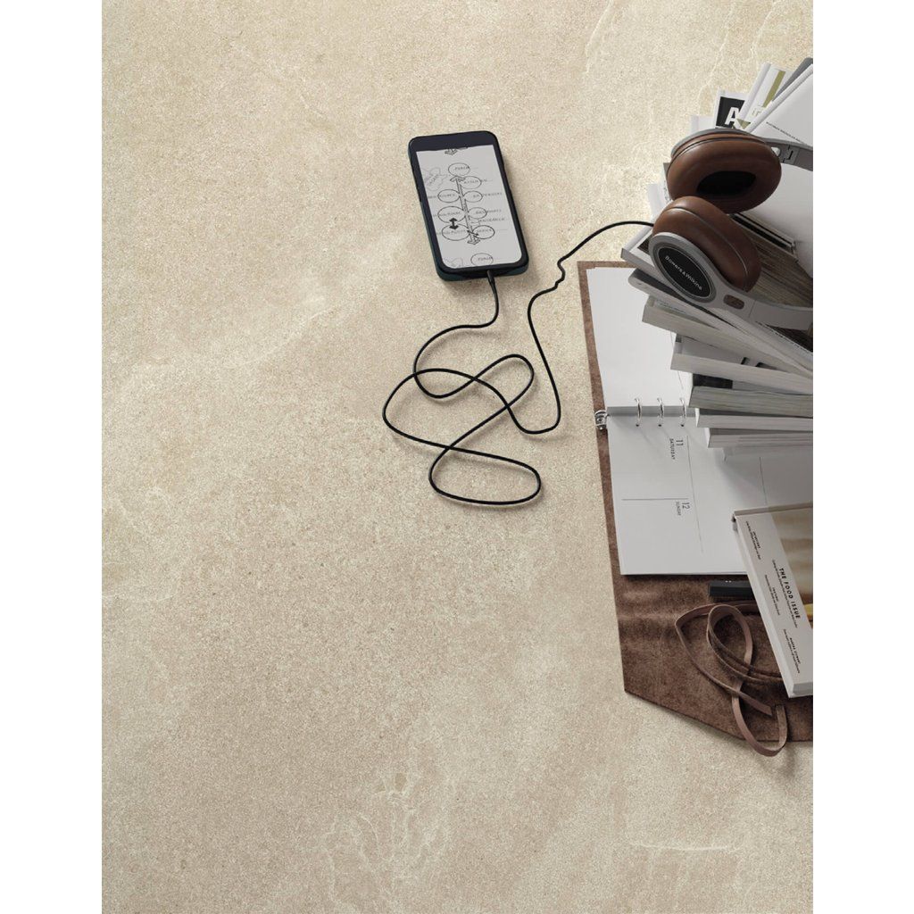 - Čistá instalace bez rušivých elementů: Rektifikované hrany dlaždic ve formátu 60 × 120 cm umožňují montáž na minimální spáru šíře 2 mm. Výsledek působí jako souvislý kamenný blok.