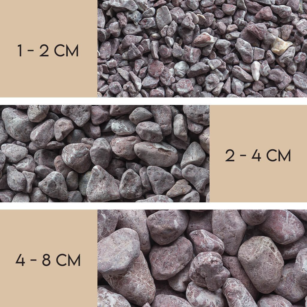 Velikostní frakce okrasných kamenů je vždy orientační a může se mírně lišit v závislosti na závozu. Pro co nejvyrovnanější vzhled doporučujeme realizaci provést z jedné objednávky a obsah big-bagů před použitím promíchat, aby byl výsledek co nejrovnoměrnější.