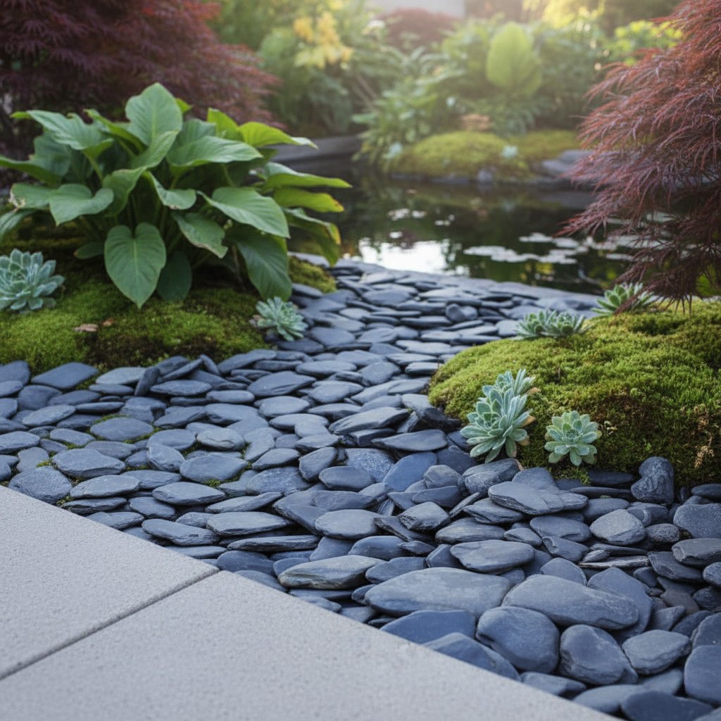 Plošky Antiko Ardesia v šedých odstínech mají jedinečnou strukturu a díky tomu, že jsou vodou omleté, mají zaoblené hrany. Můžete je využít jako dekorační prvek ve vašem bytě a domě, na zahradách k obsypání rostlin, keřů, stromů, ploch kolem bazénů nebo na hroby.