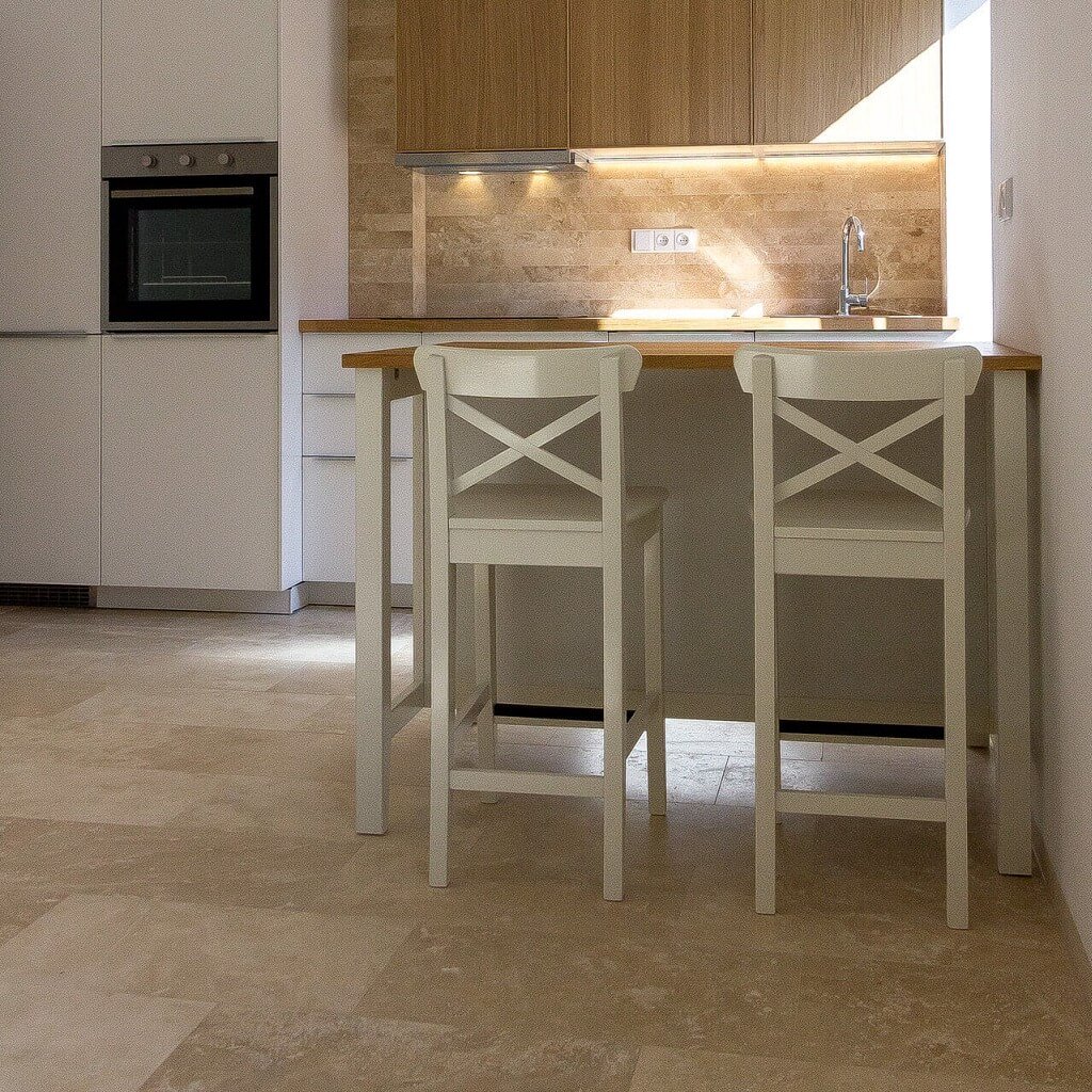 Velký potenciál je nyní v neodolatelném, luxusním travertinu, který působí velmi elegantním a decentním dojmem. Novinku kamenné podlahy Trendo v odstínu Crem nabízíme ve velikosti 61 x 40,6 cm. Tato kamenná podlaha Trendo Crem je vyrobena z neodolatelného hlazeného a plněného travertinu, který dokonale vyzdobí náročná místa jako jsou koupelny a kuchyně, ale honosným dojmem působí také ve větších prostorách, kde vynikne jedinečný formát kamene. Do módy se vracejí klasické, ale nově zužitkované materiály. Vkusný interiér vytvoříme například umístěním koupelnové dlažby z kamene. Travertinová dlažba má velmi široké využití, její půvab a eleganci podtrhnete kombinací s kamennou mozaikou.