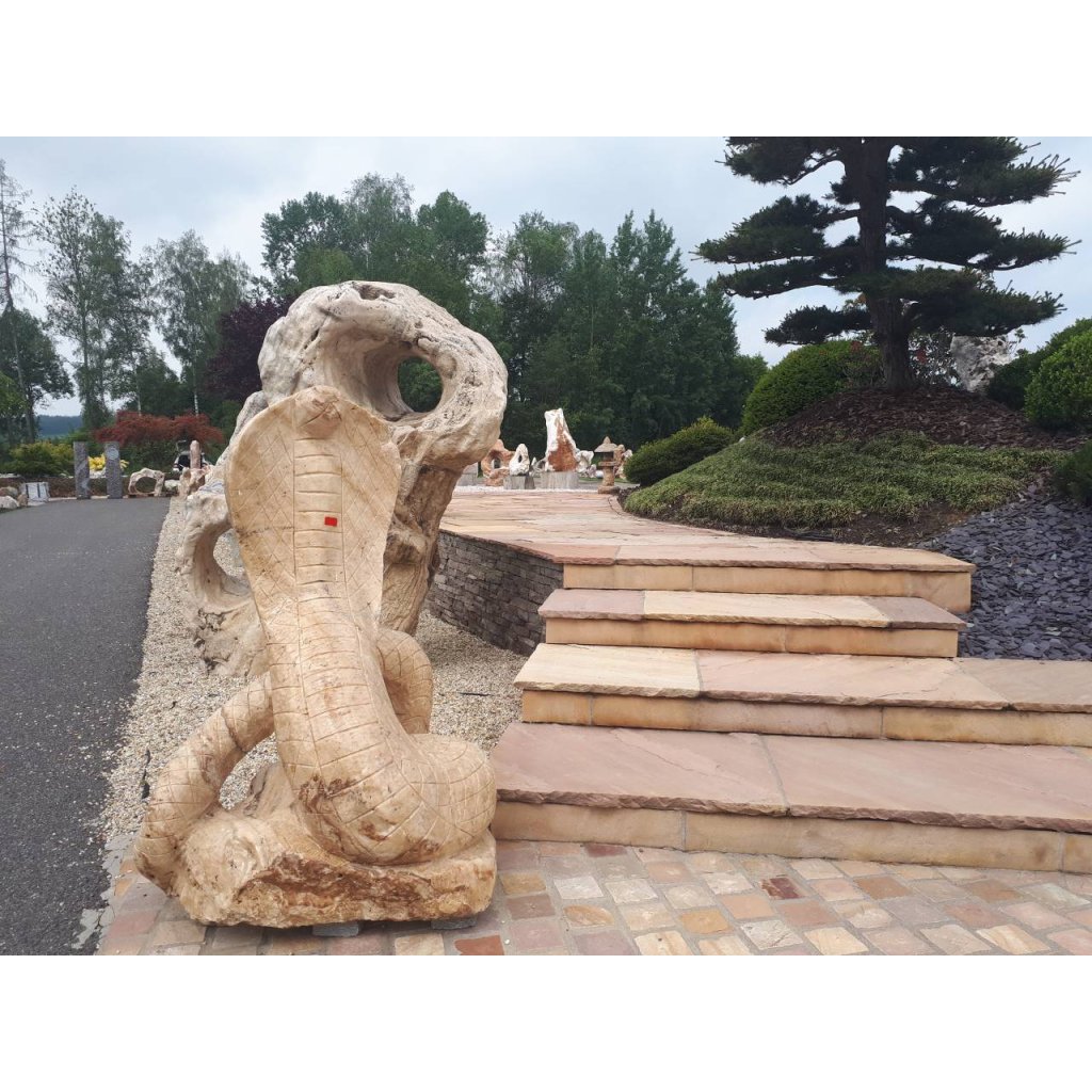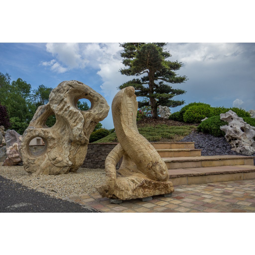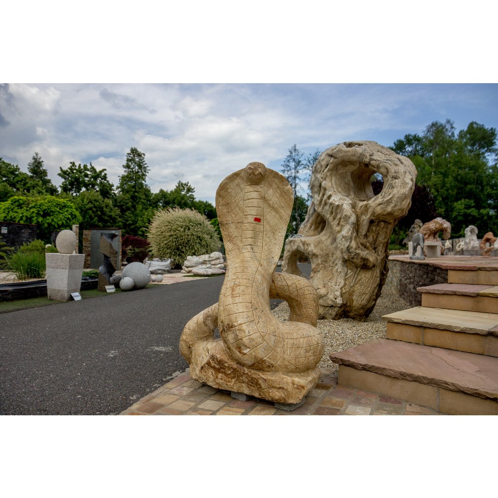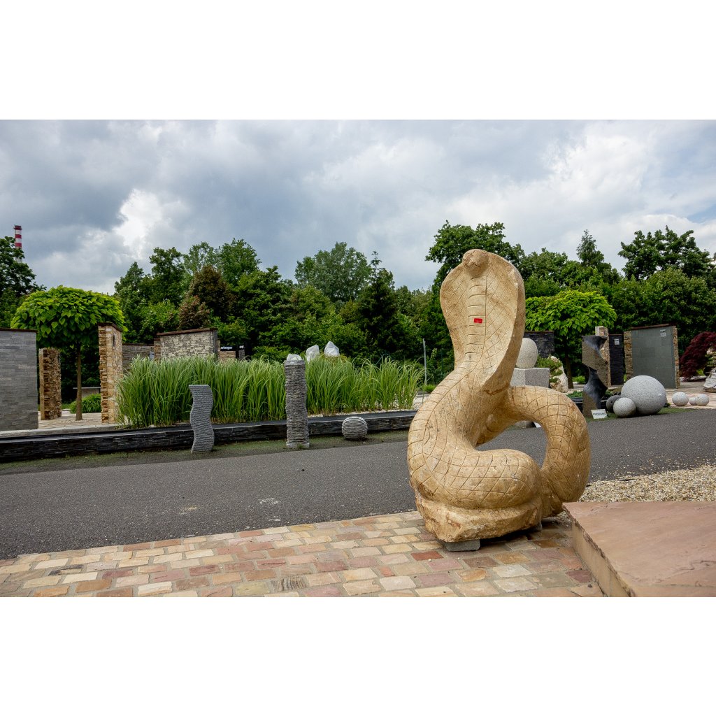 Onyxová kobra z přírodního kamene je novinkou v naší prodejně. přibližné rozměry sochy jsou 70 x 80 x 120 cm.