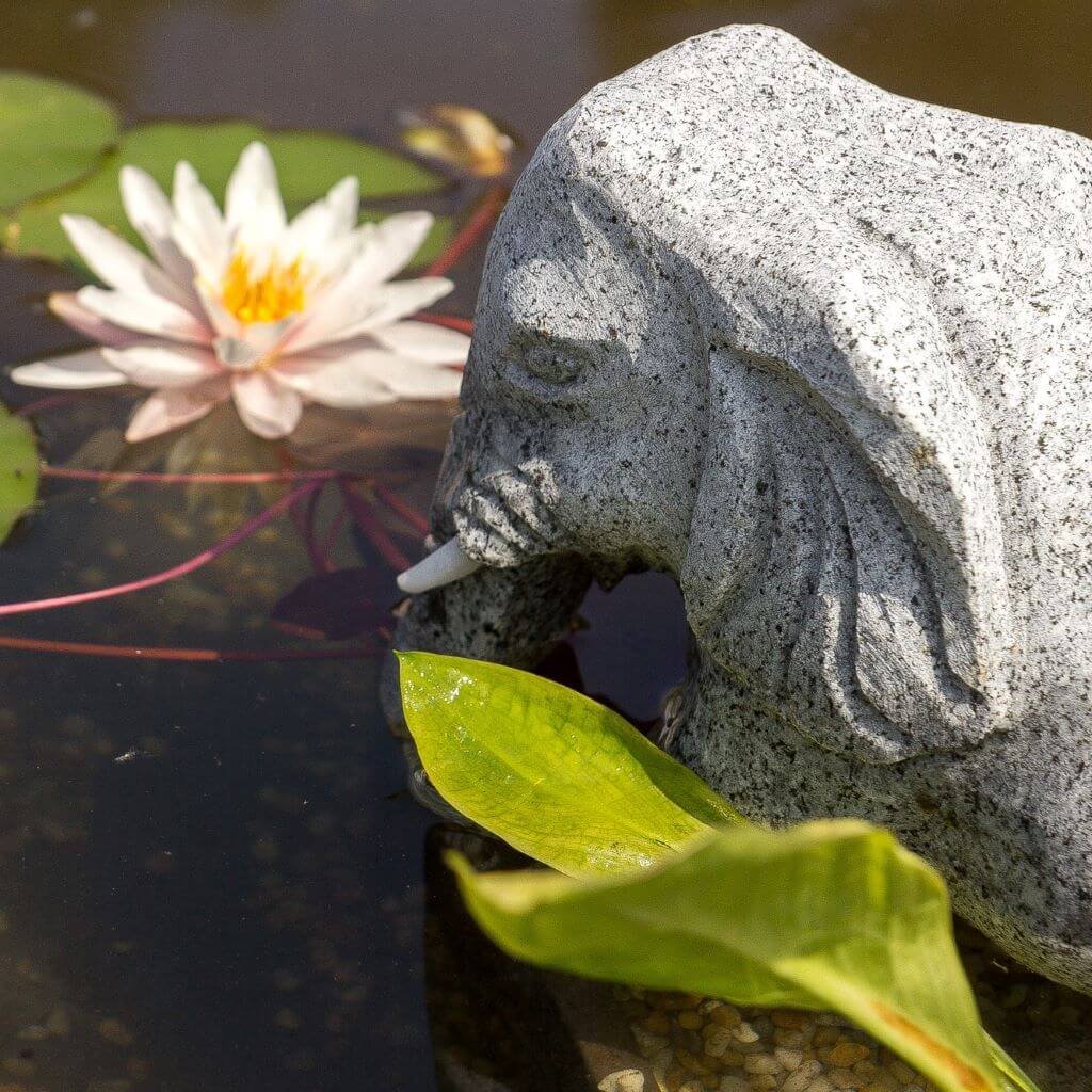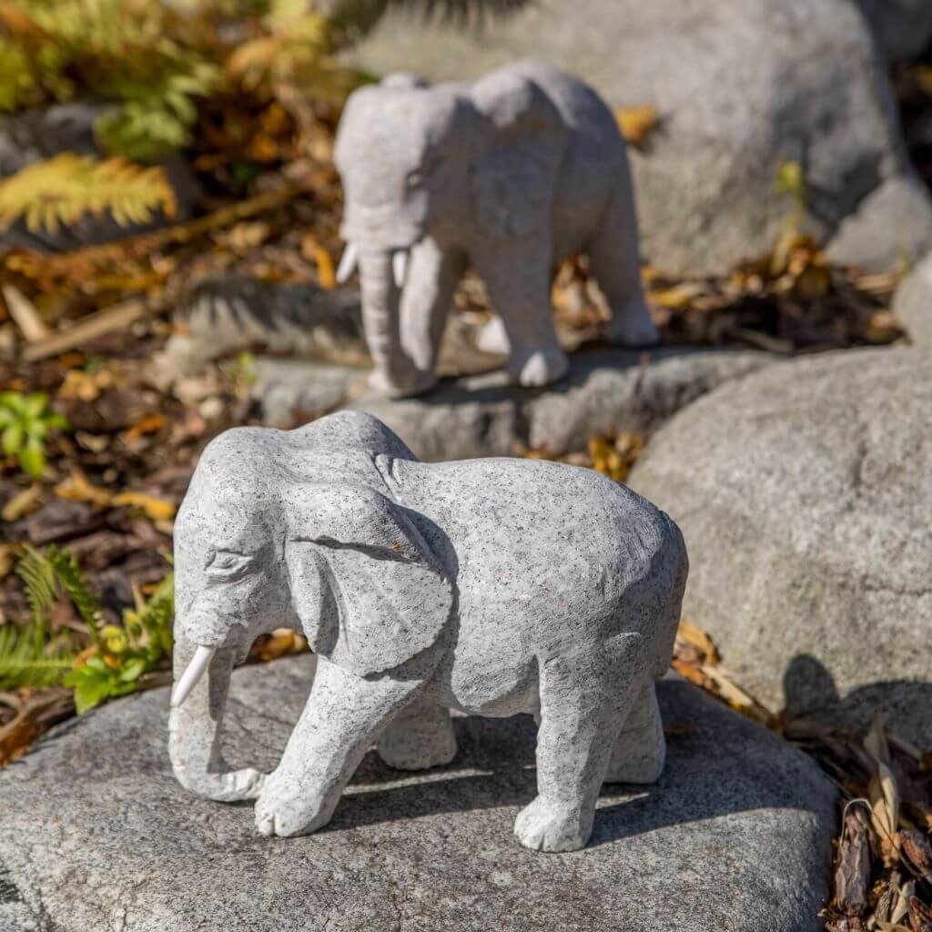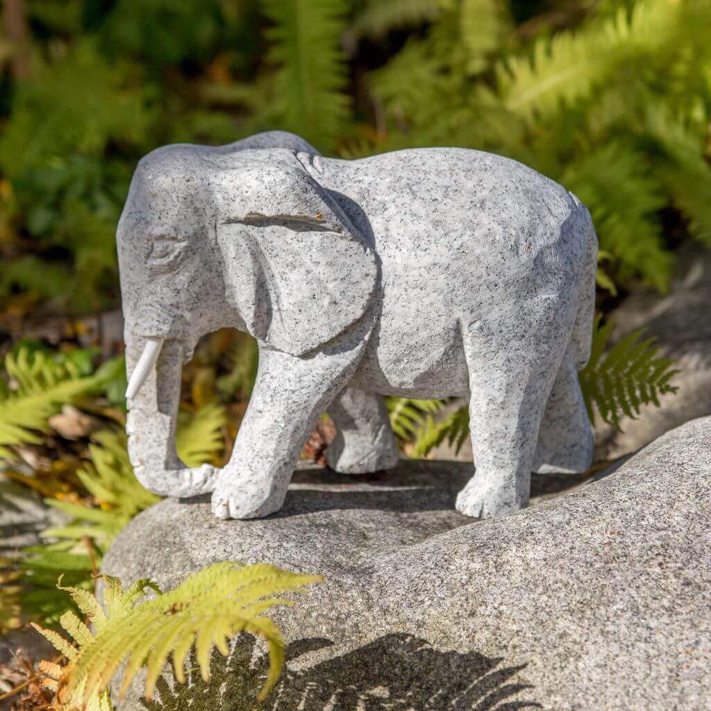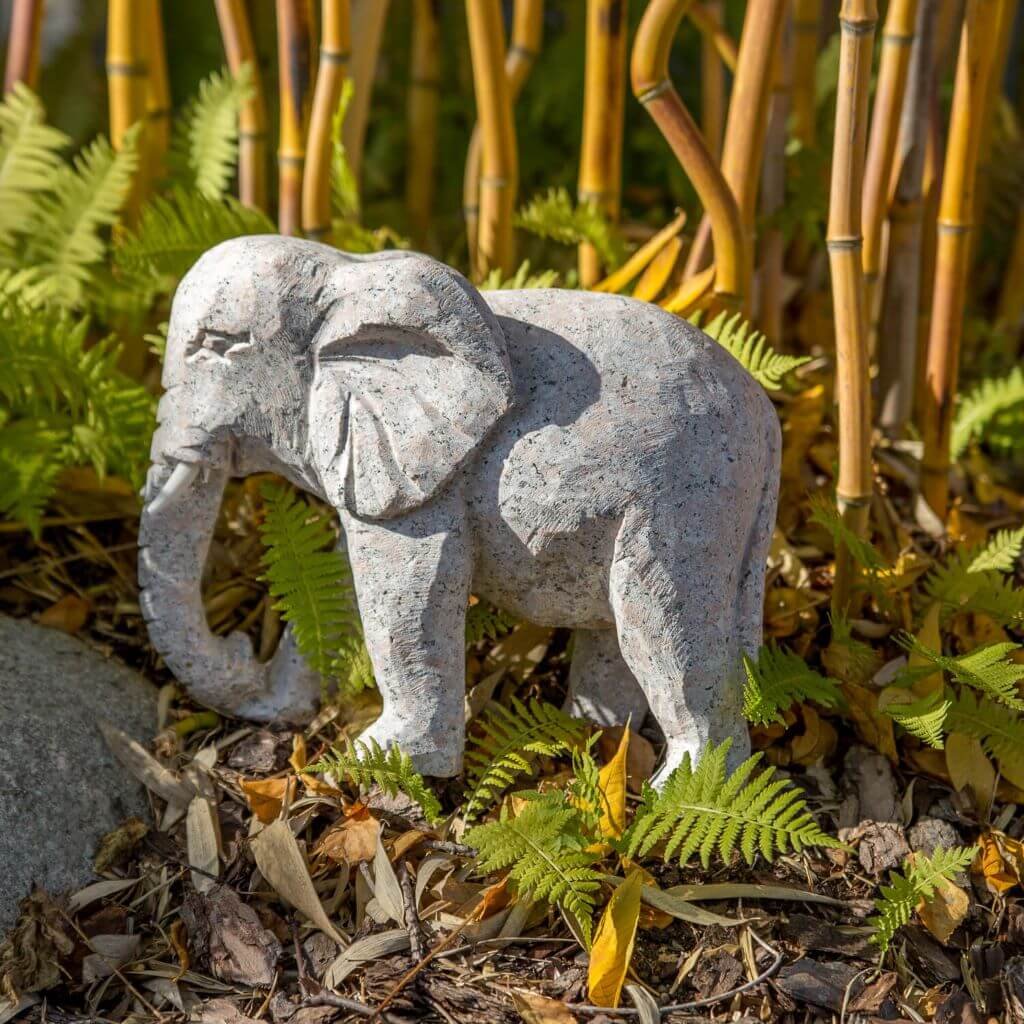 Chcete-li si svou zahradu ozvláštnit soškou, z estetického ani praktického hlediska není vhodné umisťovat do přírody umělý materiál. Proto je ideální vybrat si do zahrady výrobek, který je vytesán z přírodního kamene. Velmi dobře působí kamenná socha slona umístěná mezi rostlinami.
