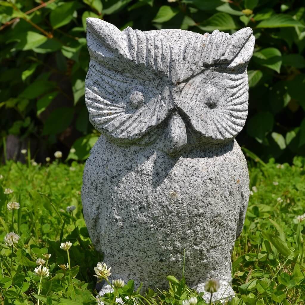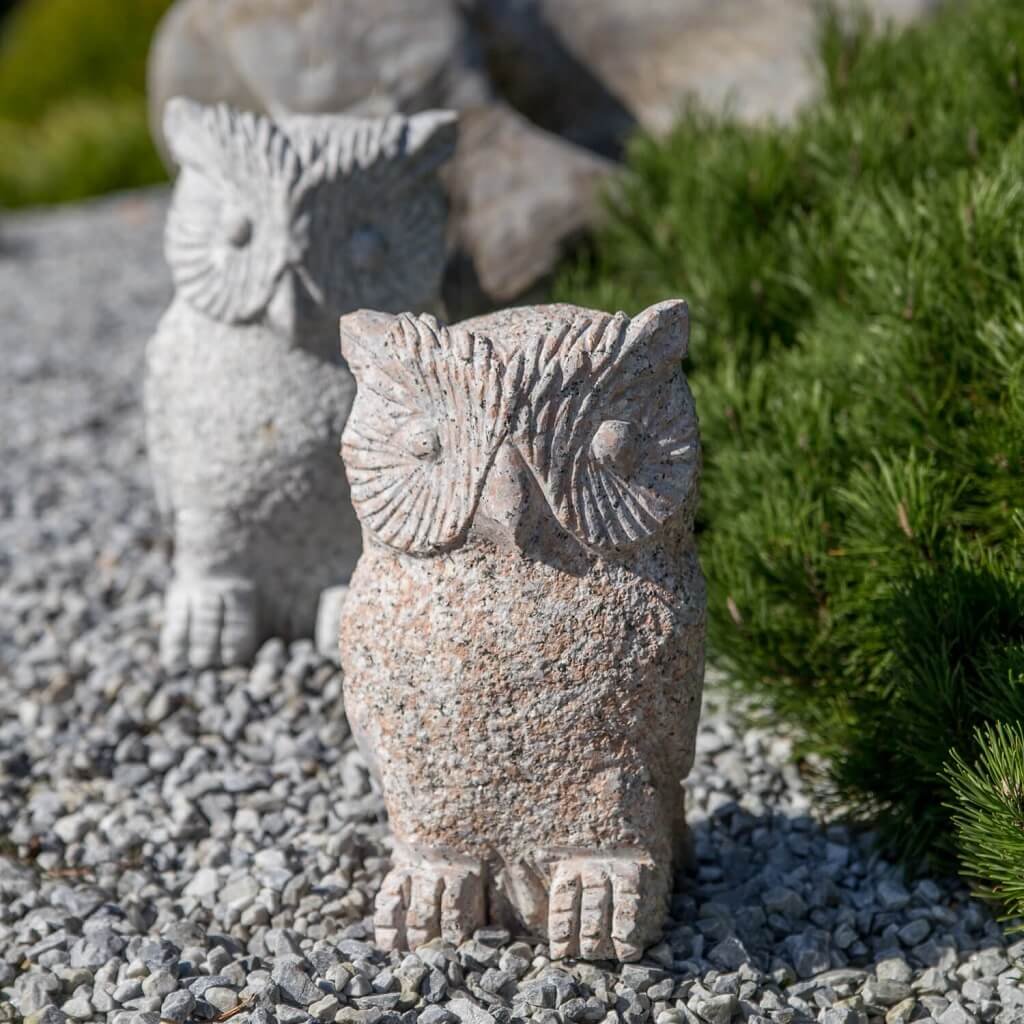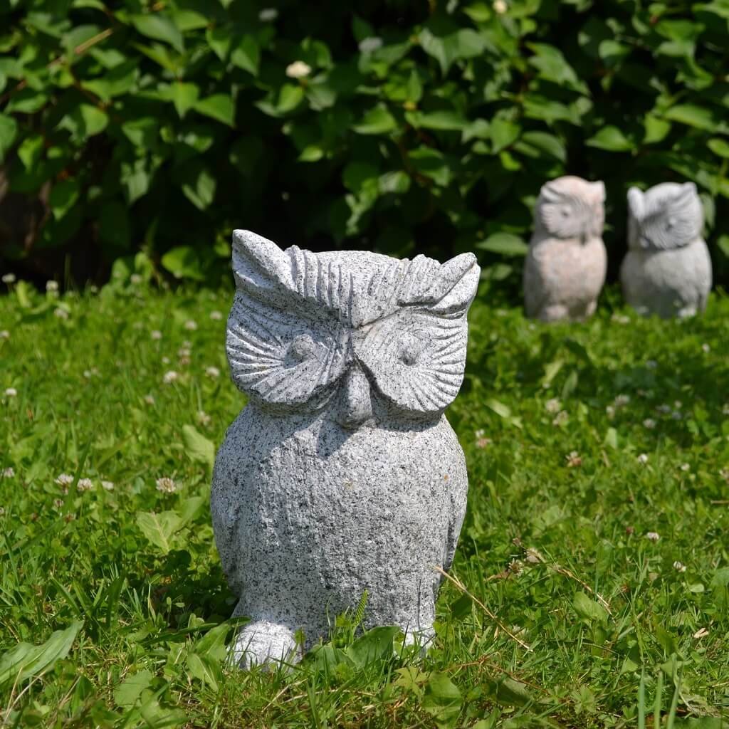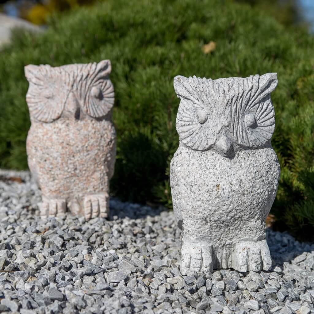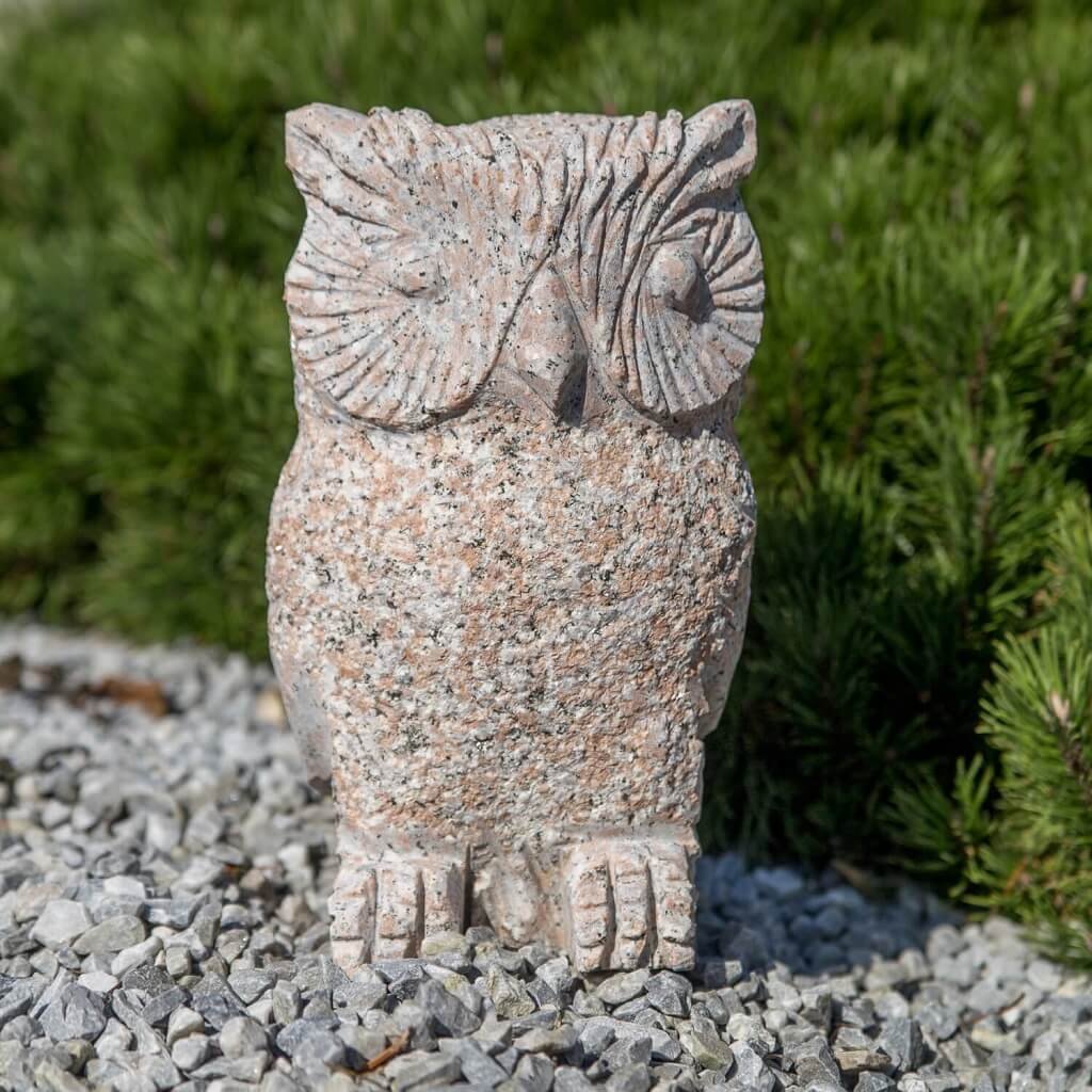 Sova z přírodního kamene o velikosti 30 cm. Chcete-li si svou zahradu ozvláštnit soškou, z estetického ani praktického hlediska není vhodné umísťovat do přírody umělý materiál. Z toho důvodu je ideální vybrat si do zahrady výrobek, který je vytesán z přírodního kamene.