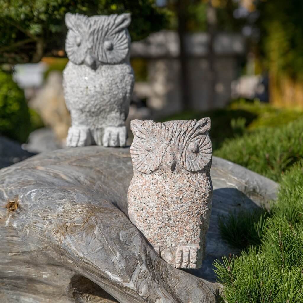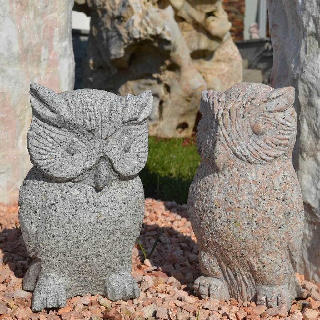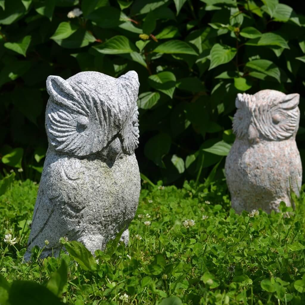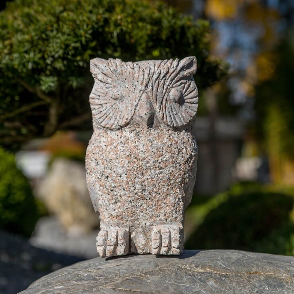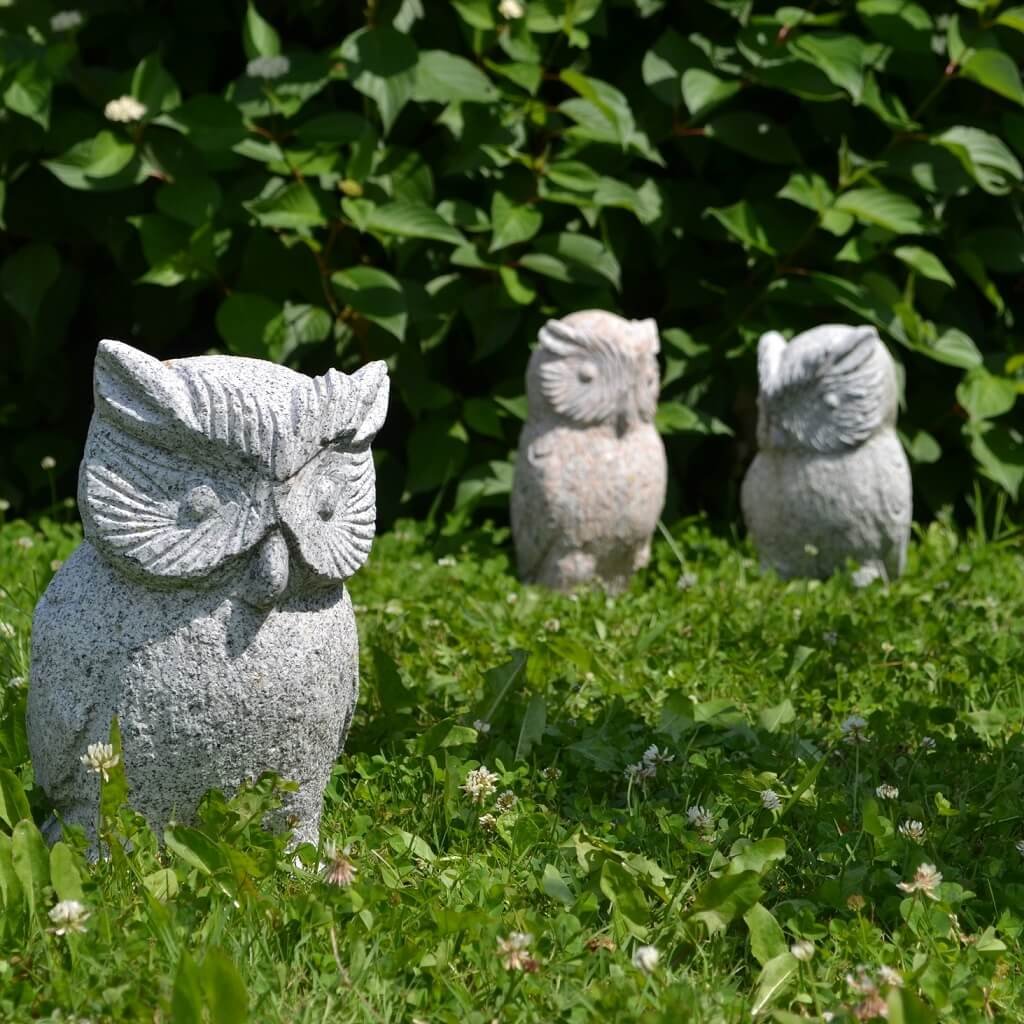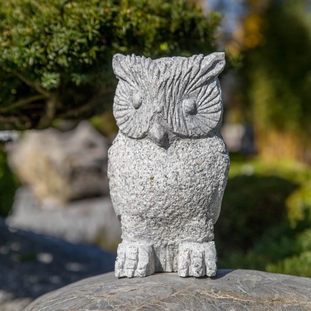 Sova z přírodního kamene o velikosti 30 cm. Chcete-li si svou zahradu ozvláštnit soškou, z estetického ani praktického hlediska není vhodné umísťovat do přírody umělý materiál. Z toho důvodu je ideální vybrat si do zahrady výrobek, který je vytesán z přírodního kamene.