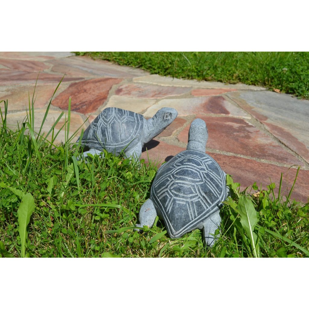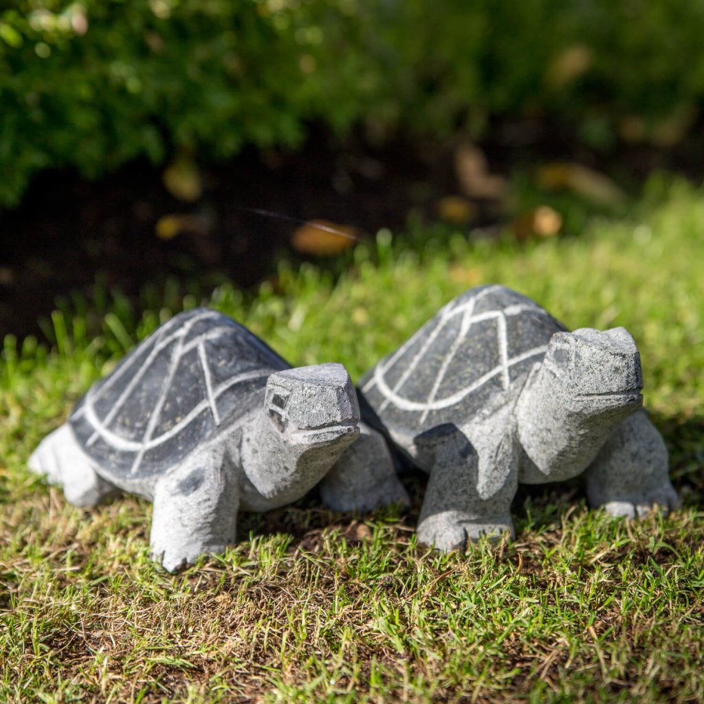 Japonské zahrady jsou typické svými zákoutími, která je třeba objevovat. Nicméně kamenná socha želvy se bude výborně vyjímat i na viditelném místě zahrady, třeba hned u vstupu.