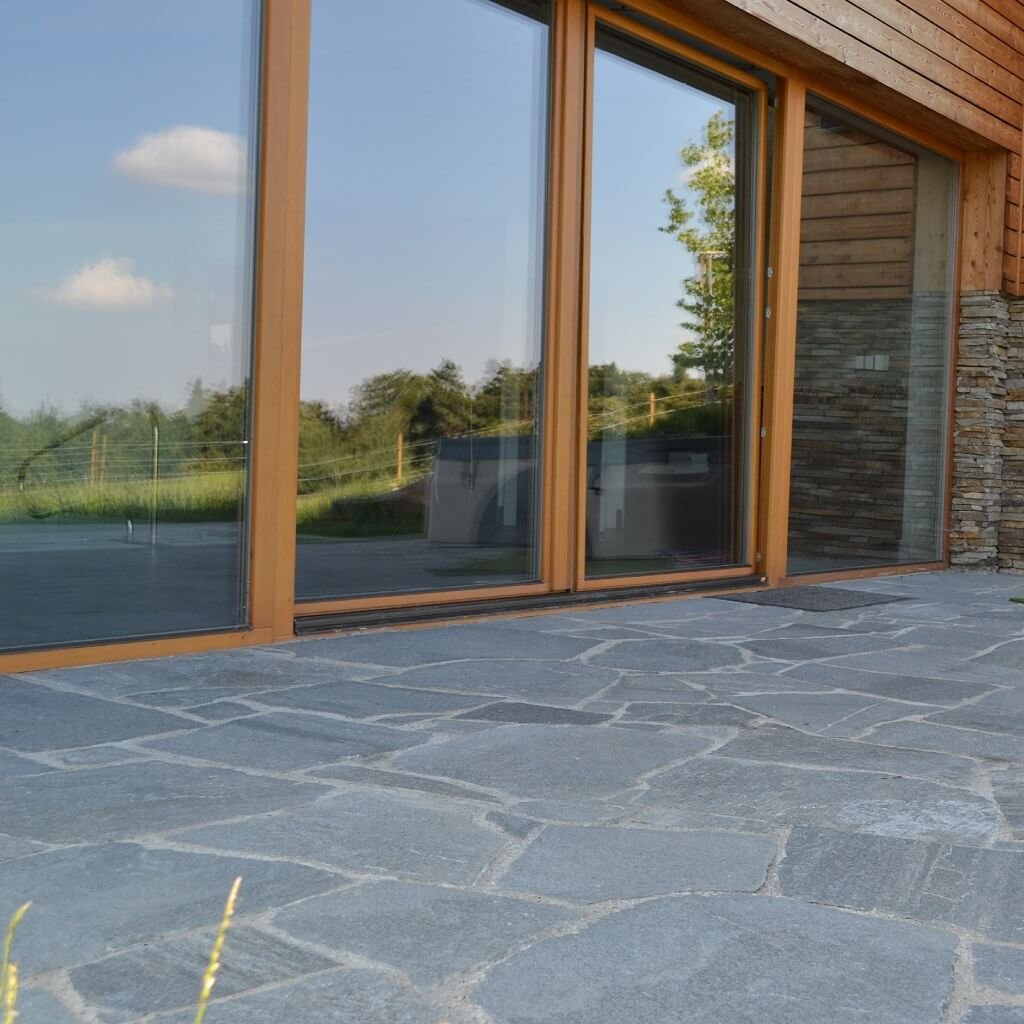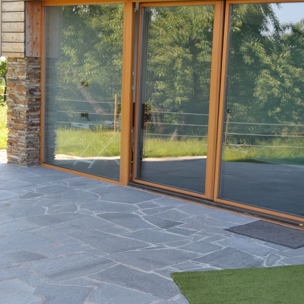 - Protiskluznost a bezpečí: Hrubší štípaný povrch fylitu zajišťuje výborné tření. Díky tomu je bezpečný pro chůzi za sucha i za mokra, což oceníte zejména na venkovních plochách.