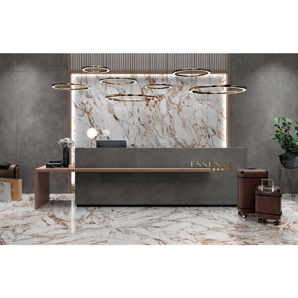 Velkoformátová slinutá dlažba a obklad Jewels 2.0 v provedení Arabescato Oro CP 03 a tloušťce 6 mm otevírá zcela nové dimenze architektonického ztvárnění interiérů. Impozantní formáty nechávají naplno vyniknout elegantní kresbě mramoru se zlatým probarvením, což vytváří velkolepou atmosféru v soukromých rezidencích, značkových buticích i moderních restauracích. Zásadní eliminace rušivých spár nejen opticky maximalizuje daný prostor, ale také odstraňuje nejčastější ložisko usazování nečistot a plísní, zatímco odlehčený profil keramiky usnadňuje transport a celkovou logistiku na stavbě.
