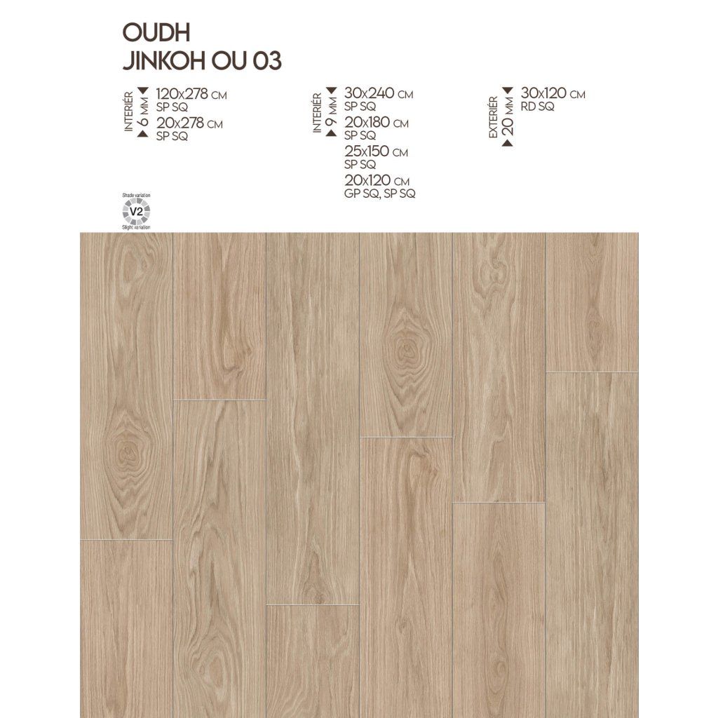 Série Oudh od Mirage je výsledkem precizního návrhu, který spojuje přírodní krásu dřeva s přednostmi keramického materiálu. Tato kolekce nabízí sedm unikátních odstínů, které od krémových a béžových tónů až po hluboké hnědé a olivové barvy evokují vzhled různých druhů dřevin. Každý z typů, jako je svěží OU 04 Pino nebo sofistikovaný OU 03 Jinkoh, přináší do prostoru nejen příjemnou estetiku, ale i praktické výhody keramických materiálů: lehkou údržbu, vysokou odolnost a dlouhou životnost.