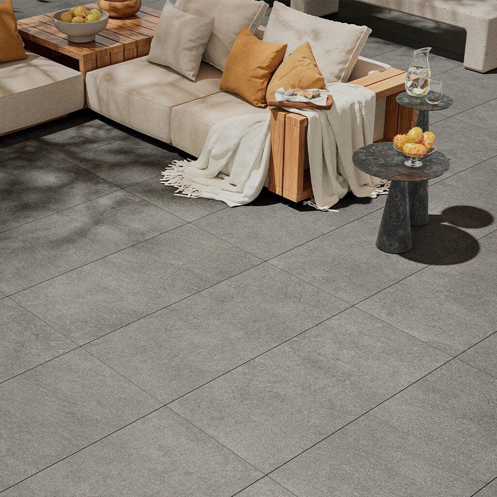 Zesílený 20 mm formát s protiskluzem R11 funguje v okolí bazénů bezproblémově. Keramika chemicky nereaguje se solí ani s běžnou bazénovou chemií. Strukturovaný povrch zároveň dodá jistotu chůze bosou nohou po mokrém podkladu.