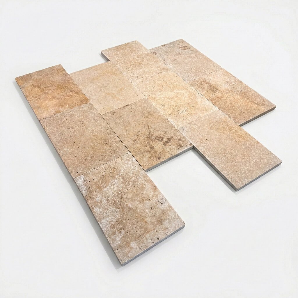 Travertinová dlažba o tloušťce 3 cm je ideální volbou pro venkovní terasy, chodníky a okolí bazénů. Díky své pevnosti ji nemusíte lepit na beton – nejlepším a nejpřirozenějším způsobem je suchá pokládka do štěrkového lože.
