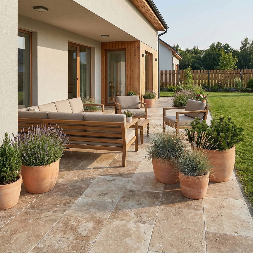 Luxusní travertin na terasu – bezpečný povrch, po kterém chcete chodit bosky